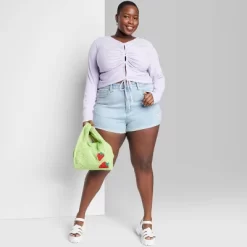Super-high rise jean shorts from Wild Fable⢠made from cotton denim fabric with a hint of spandex for stretch. Details include front, back and coin pockets, as well as rolled cuffs and belt loops.