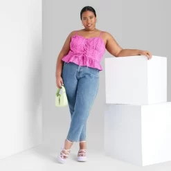 Blue jeans from Wild Fable⢠in a straight fit with tapered legs. Super high-rise cut and belt-loop waistband with fly button and zip fastening for a secure fit. Made of cotton with a hint of stretch for breathable, flexible wear that moves with you. Five handy pockets complete the look with functional flair.