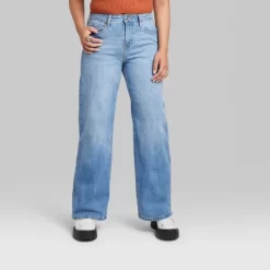 Super-high-rise blue-wash baggy jeans from Wild Fableā¢. Made from a soft cotton blend with spandex for all-day stretchy comfort. Designed with wide legs in a relaxed fit. Front, back and coin pockets provide space for stashing small essentials.