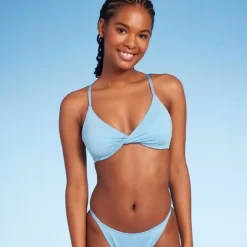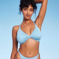 - Twist-front bralette bikini top in blue