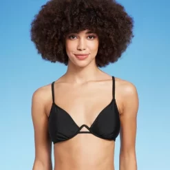 Demi-cup bikini top from Wild Fable⢠with underwire for extra support. Soft and stretchy fabric construction. Adjustable straps with back hook closure provide a snug fit. Removable cups offer customizable coverage.