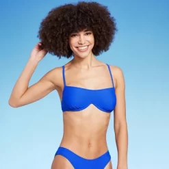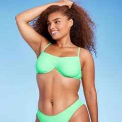 Solid-color bikini top from Wild Fable⢠features underwire design for extra support. Soft and stretchy fabric construction with demi cups. Adjustable straps with back hook closure provide a snug fit. Removable cups offer customizable coverage.