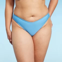 V-front bikini bottom from Wild Fable⢠in light blue. Made from soft fabric with spandex for stretchy comfort in and out of the water. Designed with opaque sheerness for confident wear. Cheeky, high-leg cut lends a flattering look.